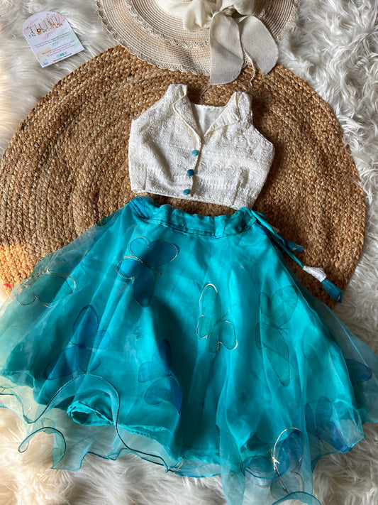 Tissue Floral Embroidery Lehenga Set with Sling Bag