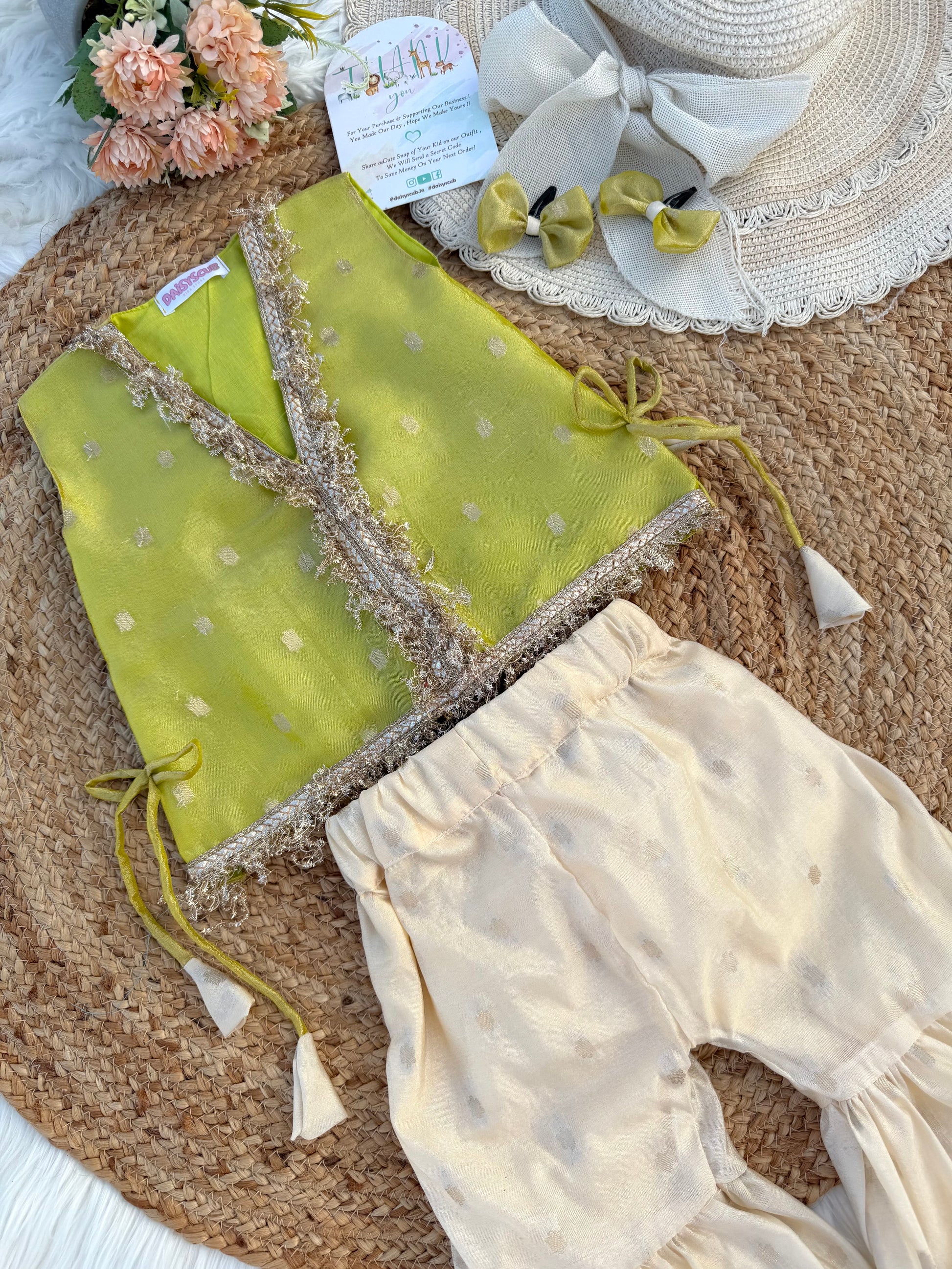 Designer Front Open Butti Top with Sharara Pants