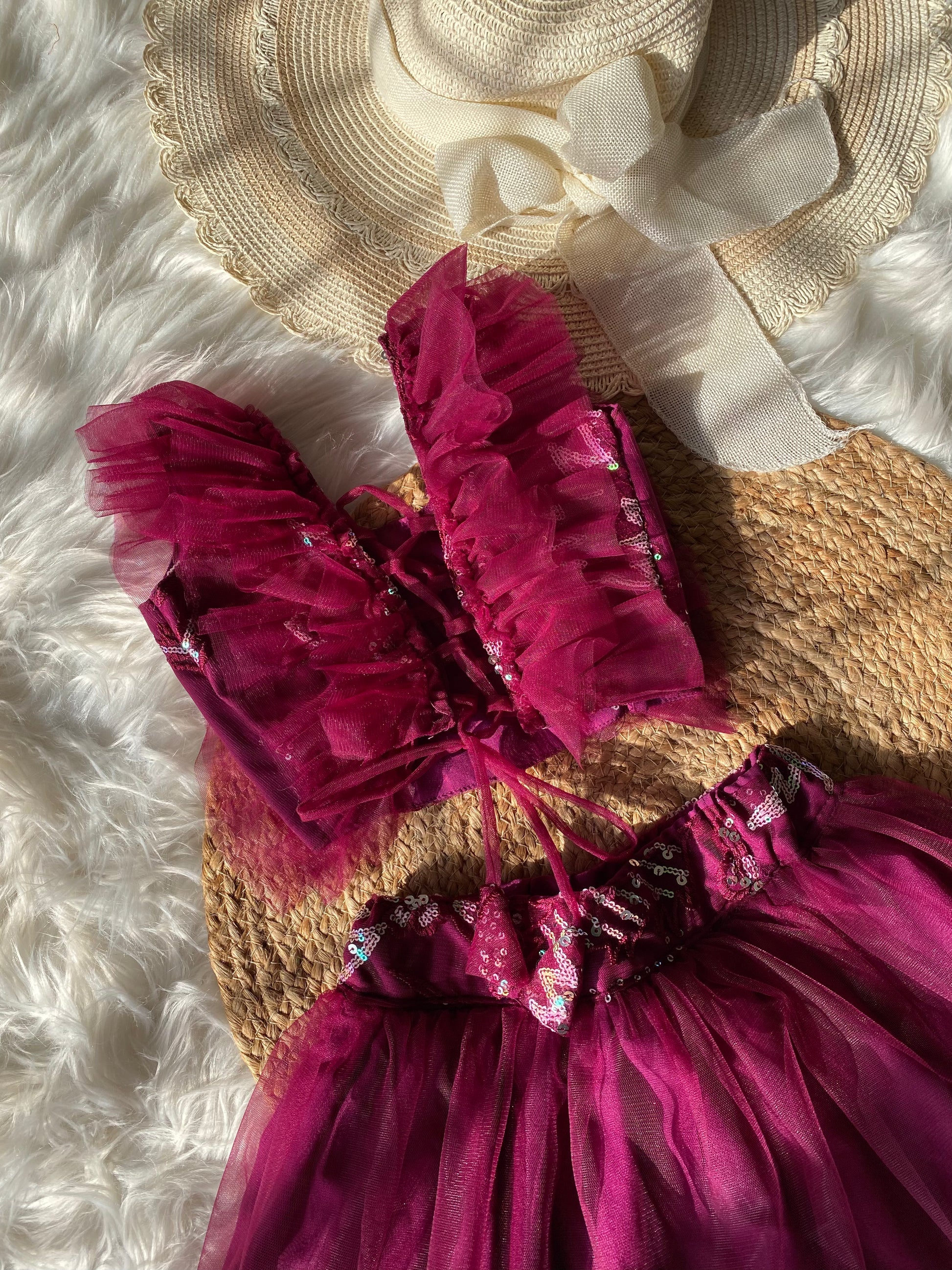 - Embroidery Net Frill Top with double layered Frill Tulle Skirt