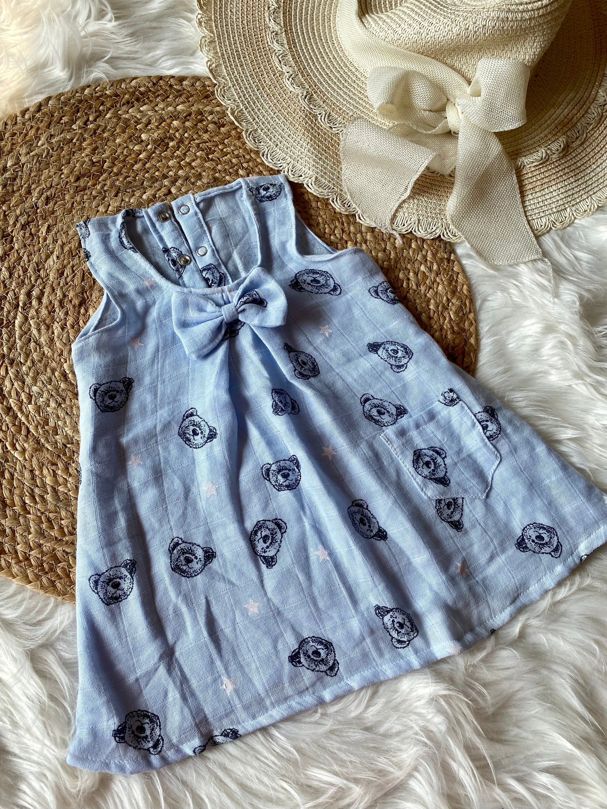 Blue Panda Print Bow Frock