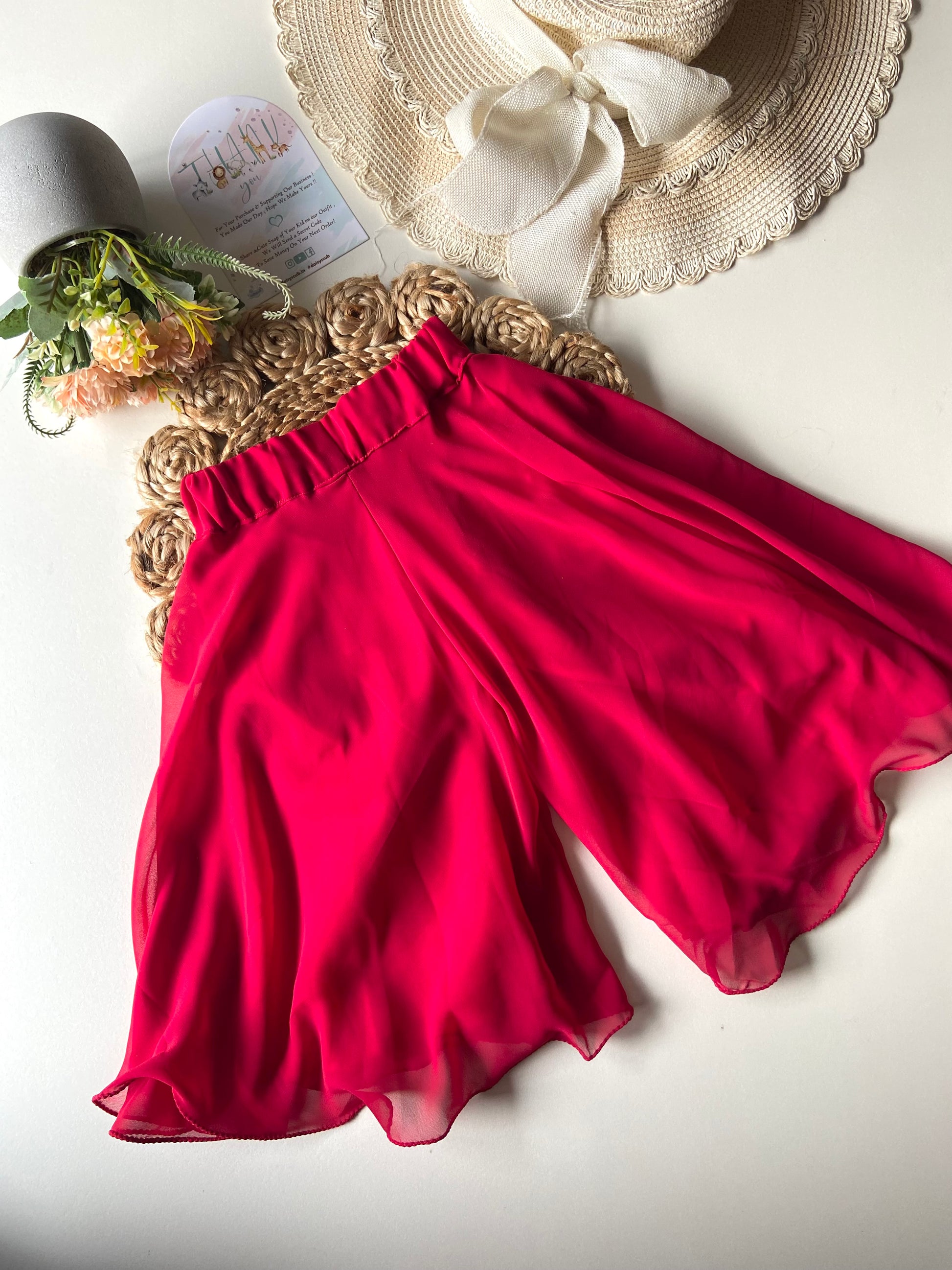 - Georgette embroidery White Thread work 3/4th Peplum Top with Flowy Georgette Palazzo
