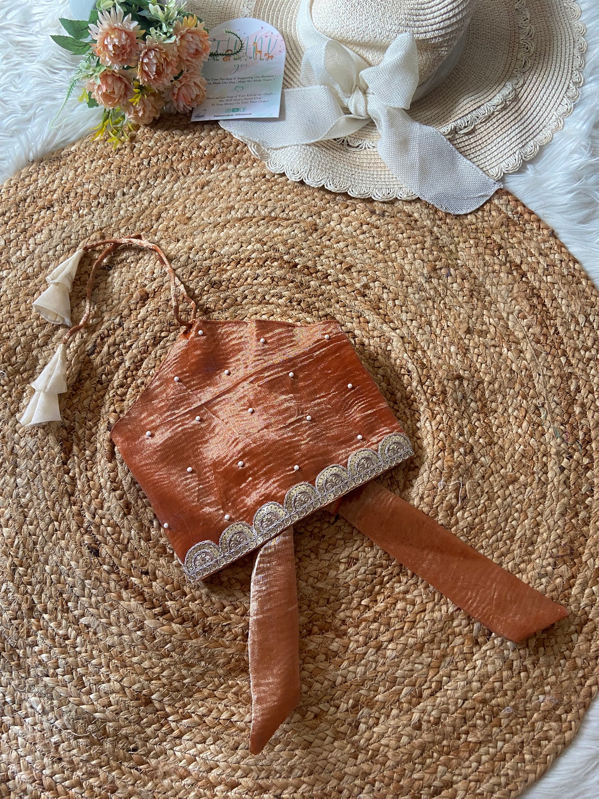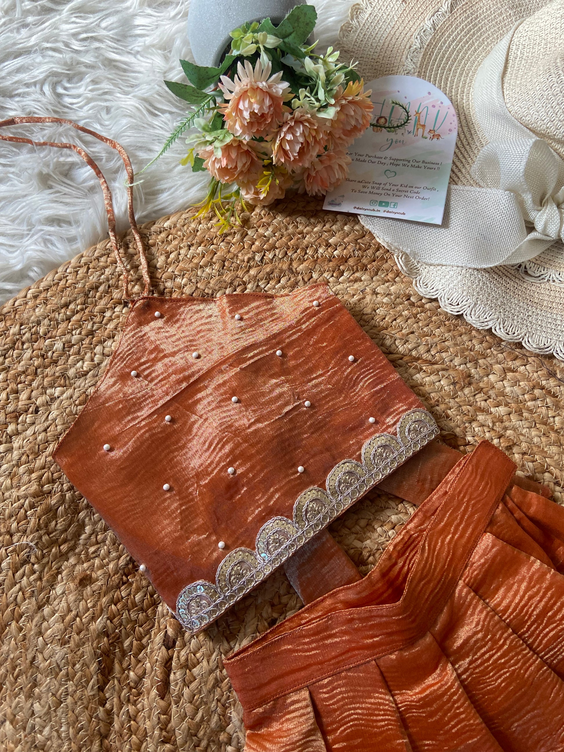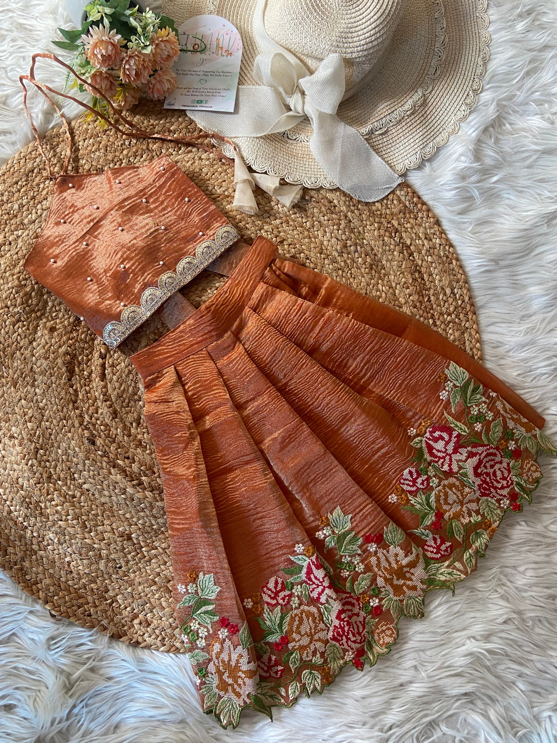 - Designer Premium Aari work Beads Top & Drawstring Flowy Pleated Skirt