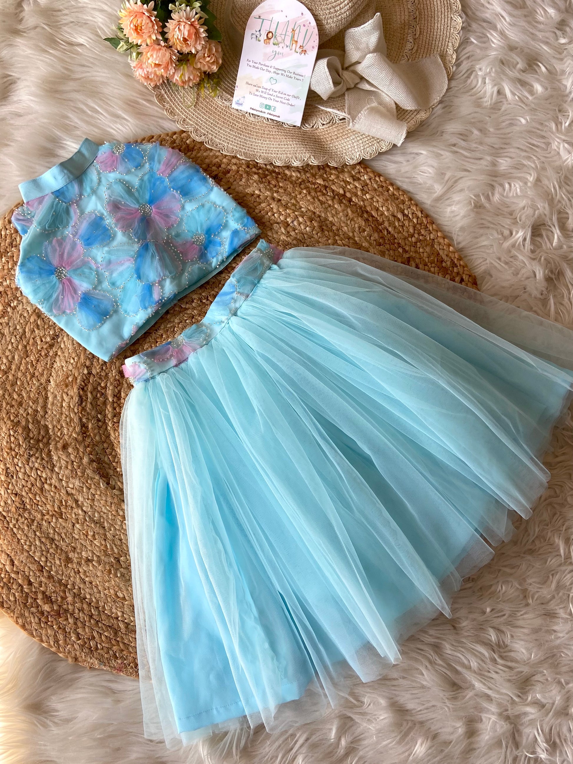 - Embroidery Net Frill Top with double layered Frill Tulle Skirt