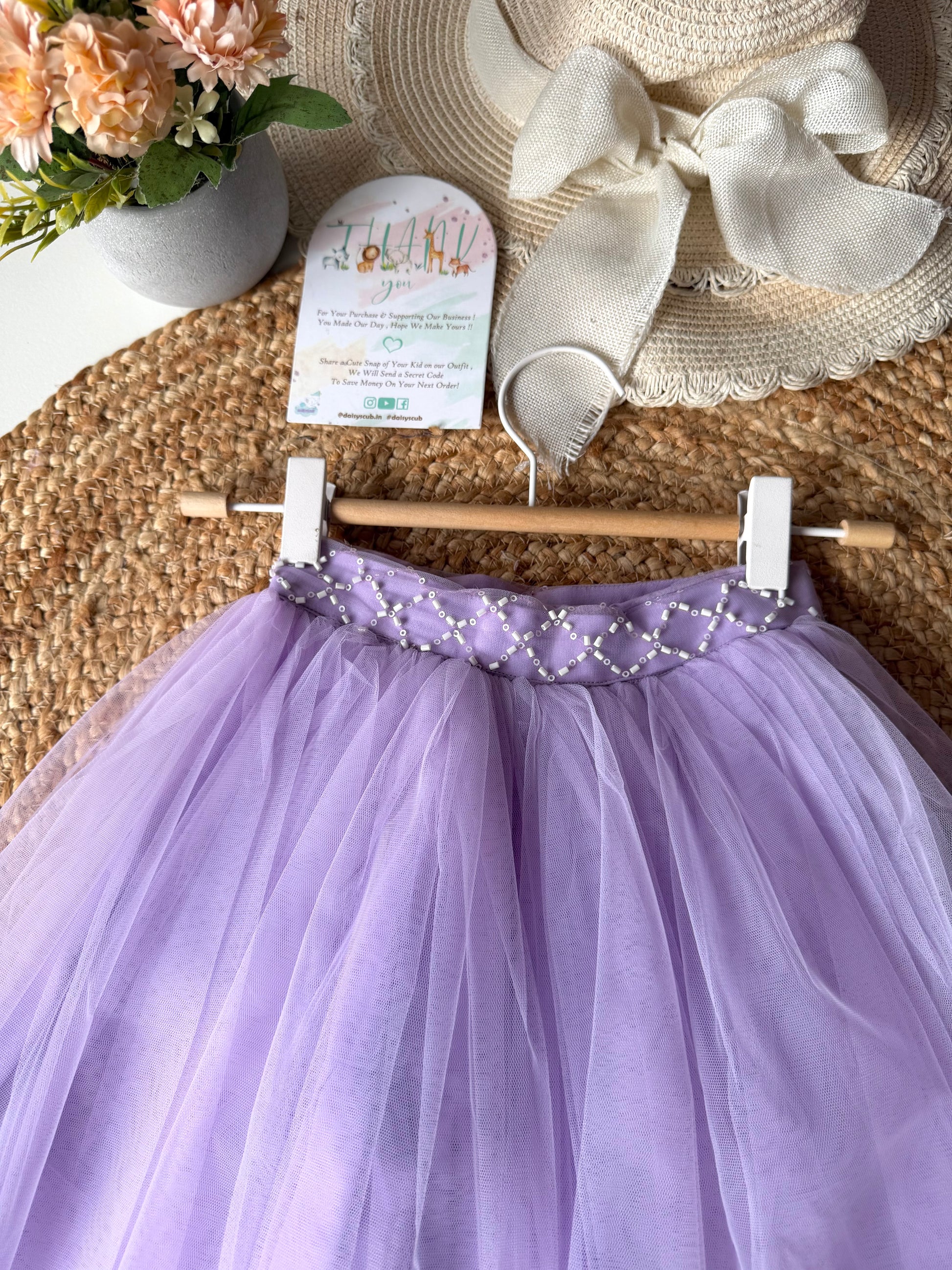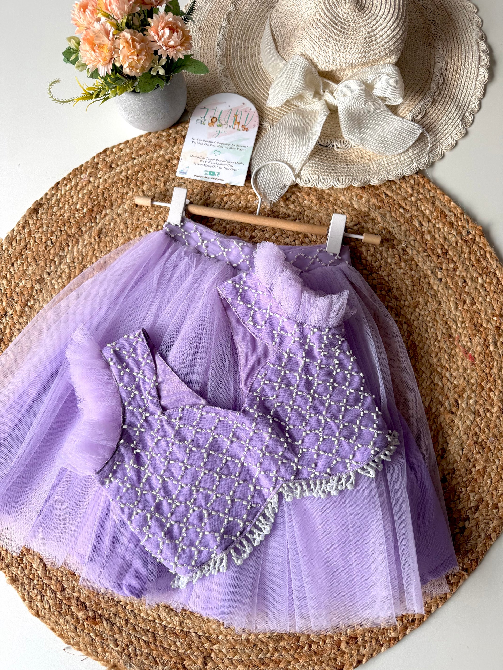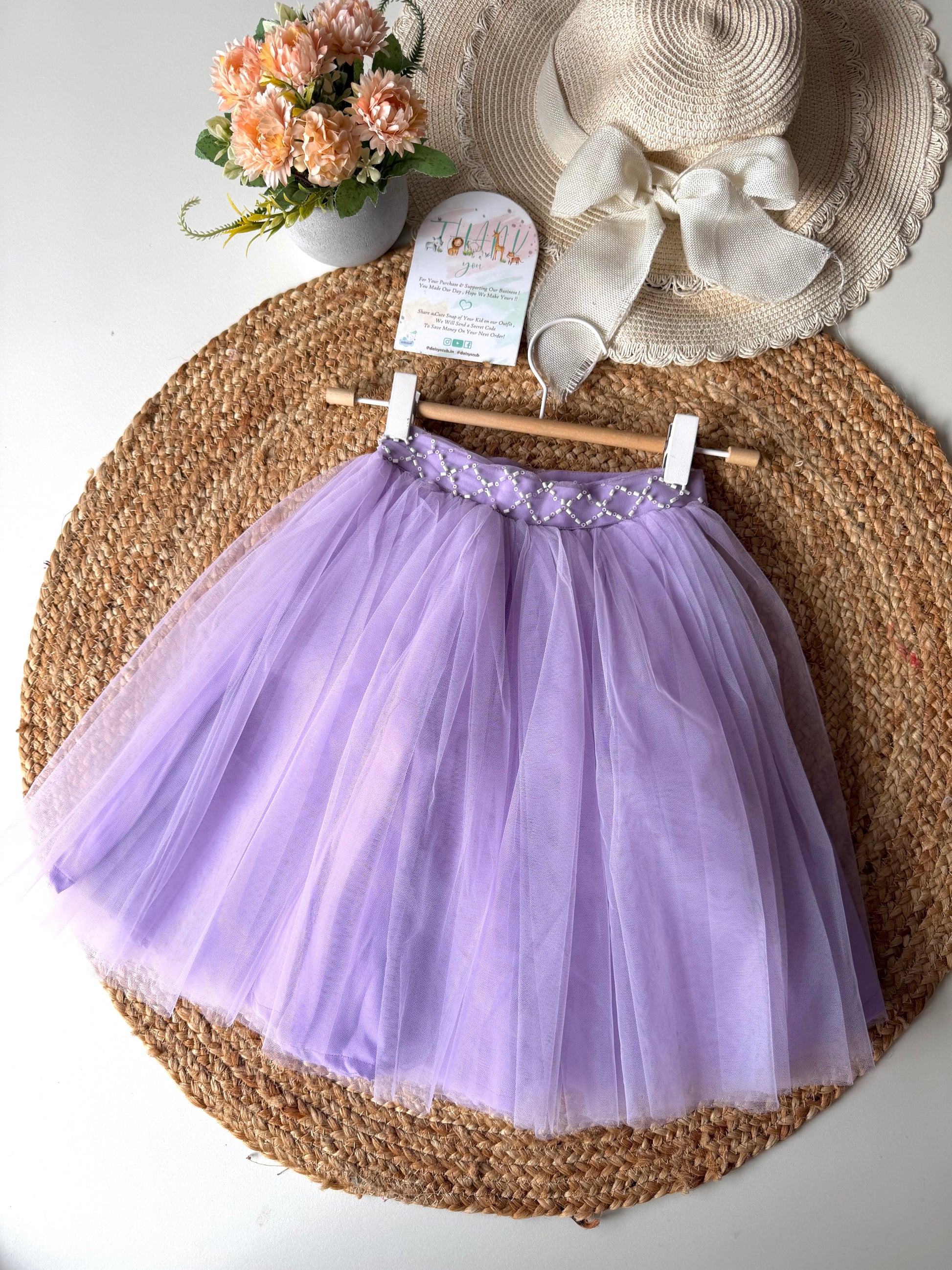- Pearl Embroidery Net Frill Top with double layered Frill Tulle Skirt
