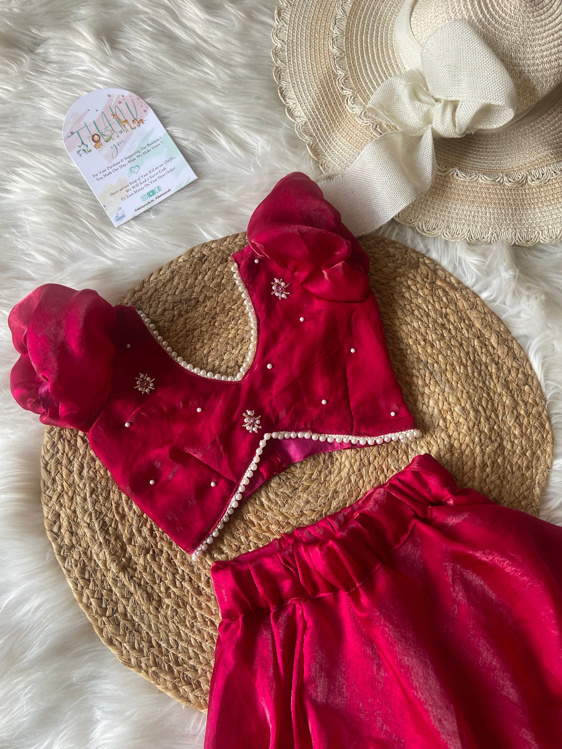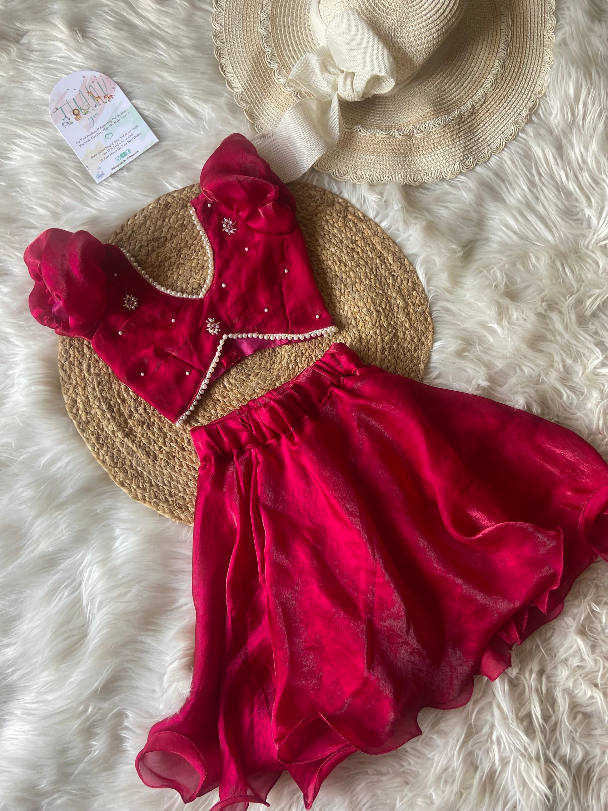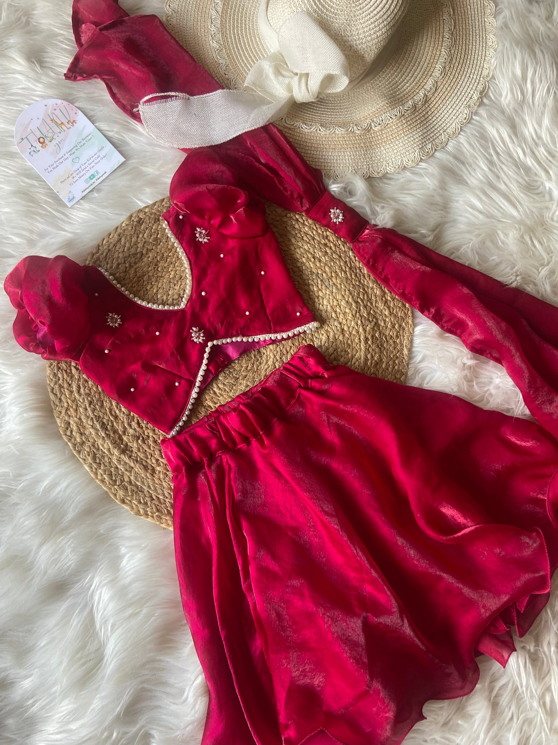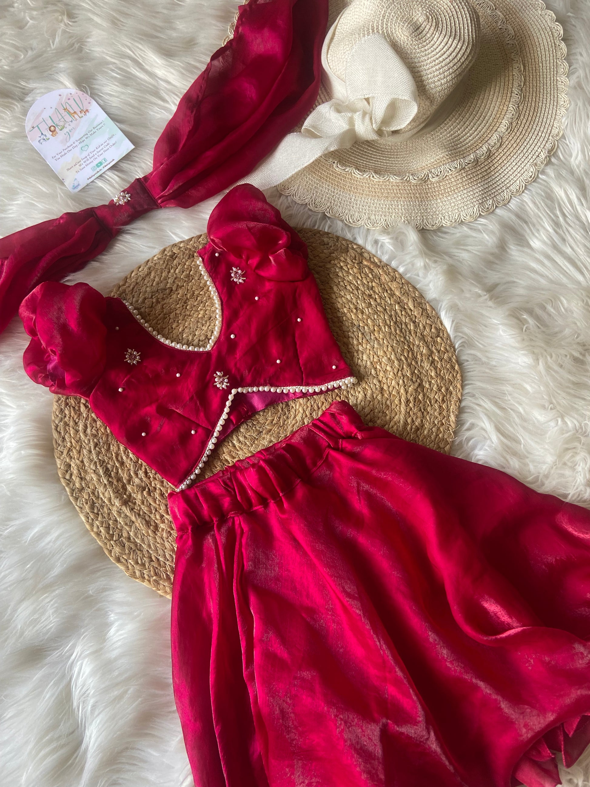 - Designer V neck pearl detailing Top & Classic flowy Circular Skirt