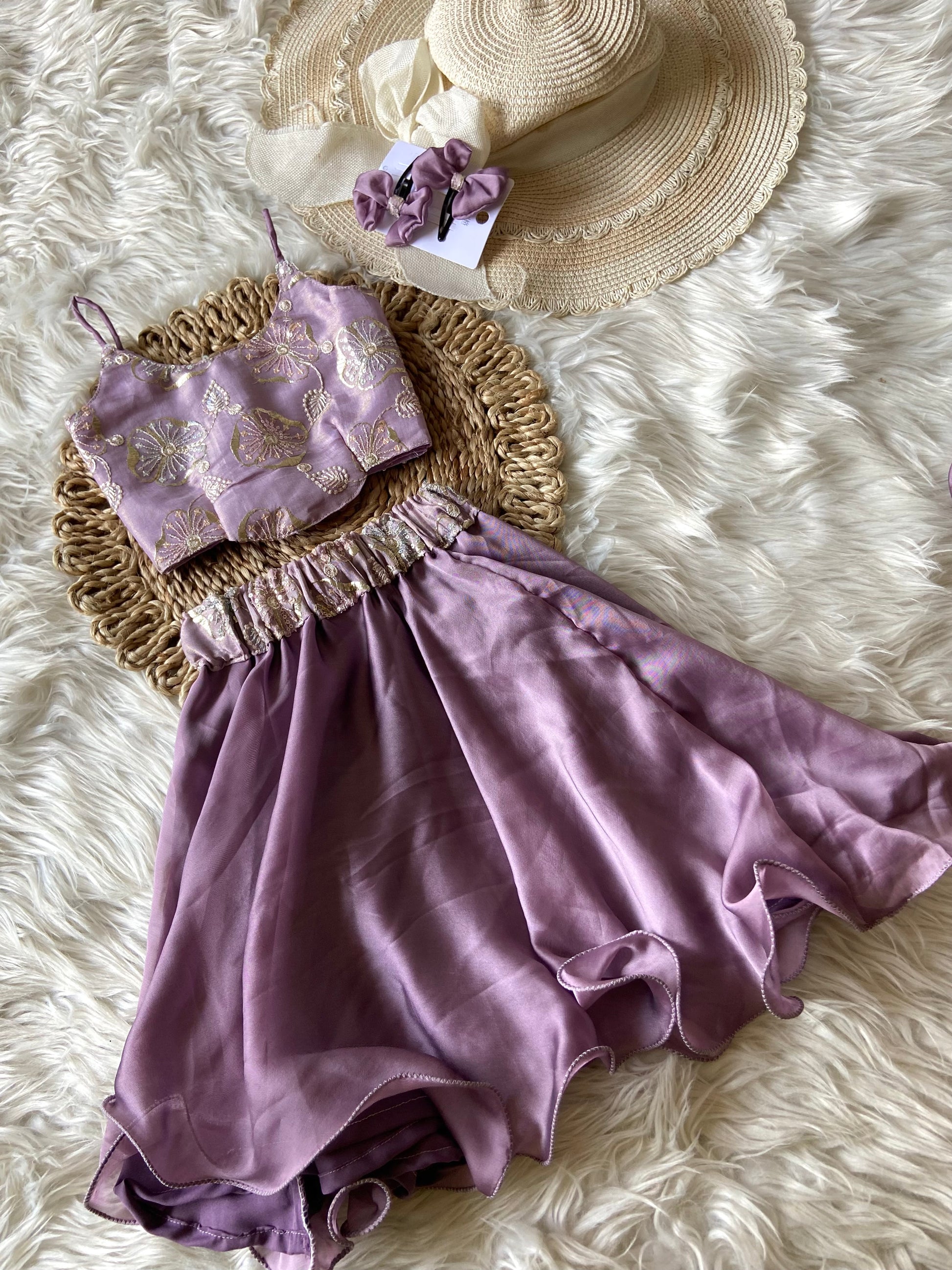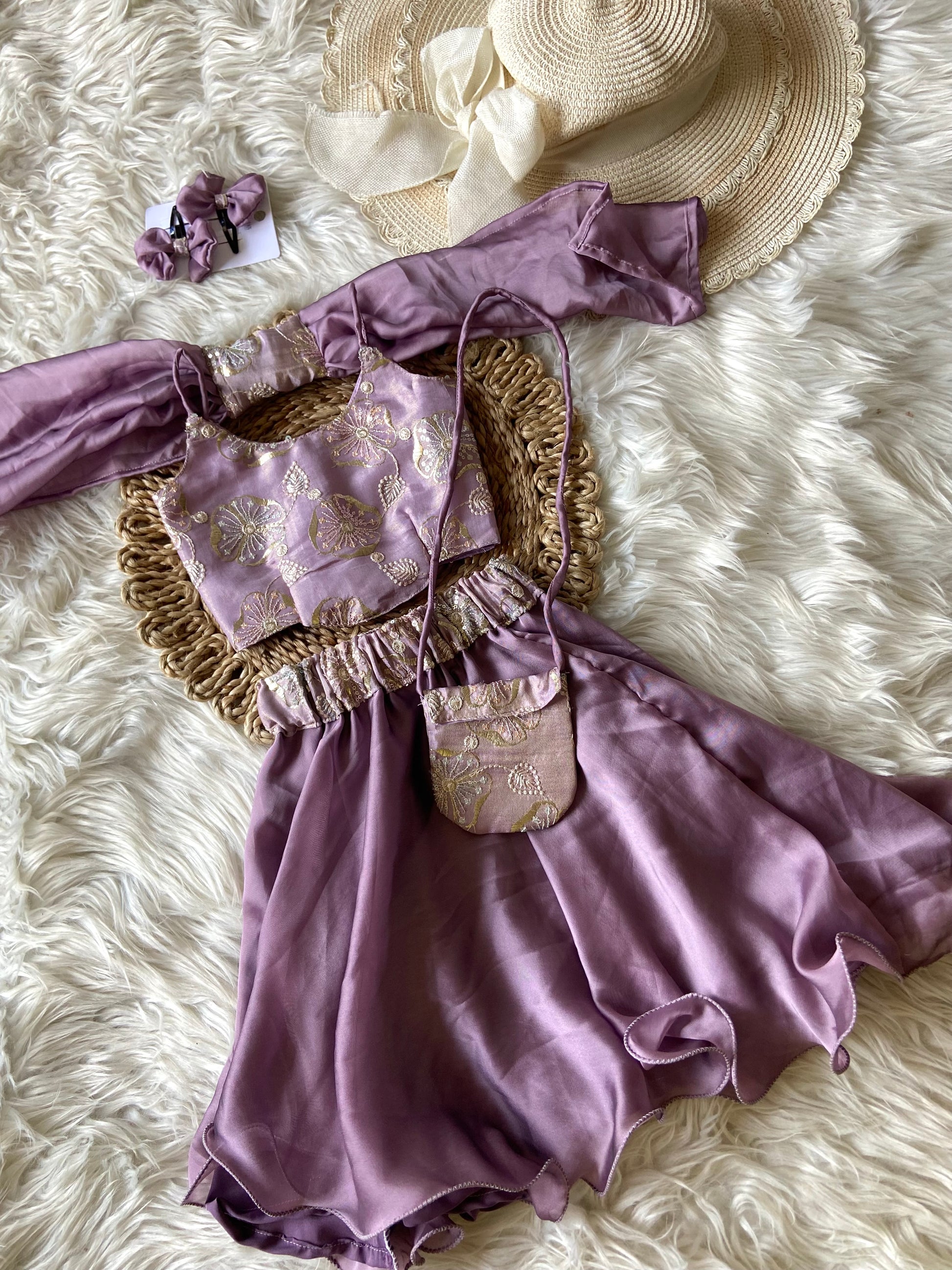 - Designer Tissue Floral Top & Classic flowy Circular Skirt with Super cute Sling Bag