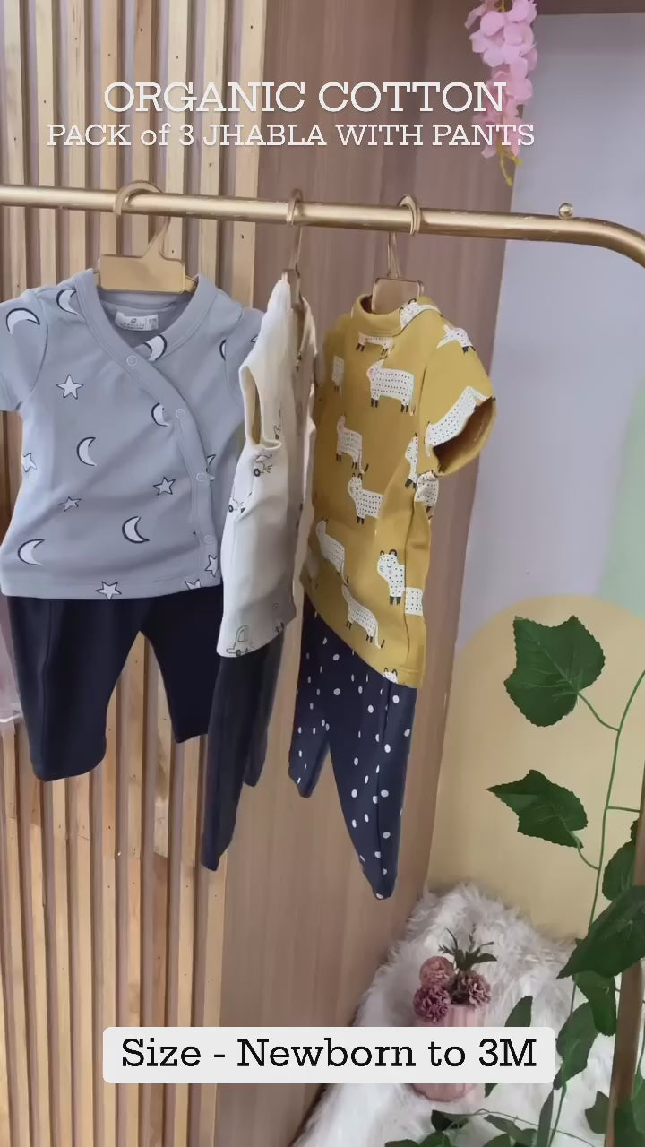 Super Soft Breathable Organic Cotton Jhabla set ( Jhabla with Buttons & Elastic Pants )